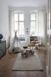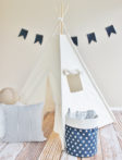 - по задней стенке вигвама можно предусмотреть специальные крепления для тканевых мешков для игрушек. Малыши сами с удовольствием будут кидать туда все свои игрушки и даже книжки! При этом в комнате будет визуально сохраняться порядок, что очень важно в условиях однокомнатной квартиры;