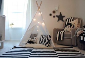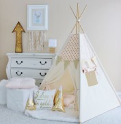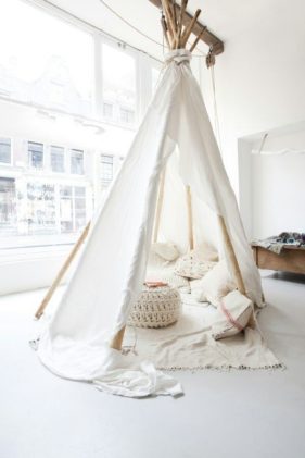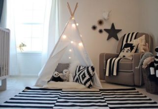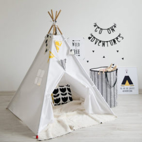 В том случае, когда в одной детской планируется разместить двух детой разного пола, вигвам выбирается нейтральный. Например, бежевая основа с розоватым декором или просто белый вариант с анималистическим рисунком. Если размеры детской позволяют, установите сразу два игровых вигвама – для мальчика и для девочки. Это понравится и вашим любимым малышам и их друзьям.