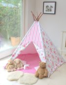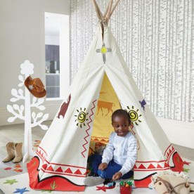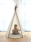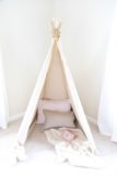 - Дома для игр самых маленьких деток. Многие детишки, у которых на дне вигвама лежат большие мягкие подушки, легко засыпают здесь и дают отдохнуть и родителям;