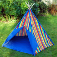 - двухсторонний вигвам, что делает образ конструкции ещё более интересным. Вы можете использовать сначала одну сторону палатки, затем другую. Такой вариант не успеет наскучить вашим детям. Плюс вигвама перед классической палаткой в том, что полотно гораздо проще и легче отстирывается;
