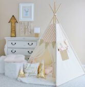 Мы в детстве постоянно строили шалаши дома из стульев и простыни или одеяла. Согласитесь, там было невероятно интересно, и играть даже в надоевшие игрушки всегда хотелось именно в этих домашне-походных условиях. Такую же сказку можно устроить и для своих детей. Правда, использовать стулья всё-таки небезопасно, потому стали популярны детские вигвамы в детских комнатах.