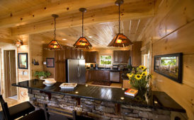 Хочется выделить особенности использования барного столика, его плюсы и минусы. Удобство заключается в том, что этот элемент интерьера позволяет экономить свободное пространство, а при наличии полок – подвесных или боковых, встроенных, вы сможете не только кушать, но и хранить кухонную утварь. Недостатком можно выделить лишь неверная или плохая эксплуатация этой части помещения. От вас требуется содержать всё в идеальной чистоте, регулярно протирать фужеры, хранящиеся здесь, а так же не заполнять столешницу декором.