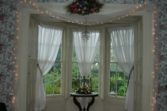 - Оформление окон занавесками из лёгких тканей, если ваши идеи – это расслабление на диванчике. К примеру, если тут повесить жалюзи, то облокачиваться на них будет неудобно и болезненно;