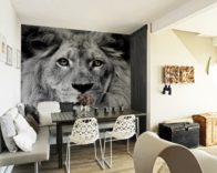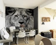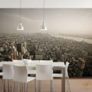 Если красивая картинка располагается за столешницей гарнитура, стоит на поверхности стены от нижнего до верхнего шкафов установить прозрачное стекло. Так вы сможете гармонично создать «фартук», который защитит фотообои от грязи, воды и жирных брызг. Такие полезные идеи стоит использовать, чтобы не приходилось проводить ремонт ежегодно или жить в грязи. Не смотря на выбор бело-серого изображения, комната будет казаться яркой за счёт красок в деталях, а светлые цвета позволят визуально расширить помещение.