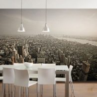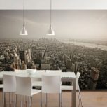 Вы можете создать свой дизайн кухни с фотообоями, если выберите тот или иной рисунок. Резких ограничений, конечно, нет, потому можно выбрать и аппетитные композиции, и городские мотивы. Важно, чтобы в этой комнате у вас появлялось желание готовить и потреблять пищу, а не портилось настроение от одного взгляда. Если выбранный вами интерьер не гармонирует друг с другом, не отчаивайтесь, просто добавьте немного аксессуаров, которые бы объединили воедино столь разные предметы.