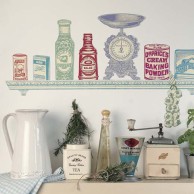Таким образом можно украсить и всего лишь фартук у стены, а можно дополнить и всю стену. Этот стиль вполне сочетается с отдельными комодами, стоящими посреди комнаты. Над ними можно установить карниз для хранения посуды в подвесном виде. Благодаря этому создастся стиль современной истории, когда образно сочетается нежность женщины и тяжесть процесса готовки.