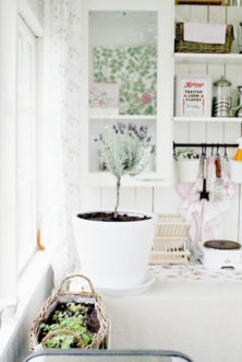 Дополнить дизайн кухни своими руками можно, если вложить в процесс душу. К примеру, если вы выращиваете на подоконники зелень, установить контейнер в плетёную корзинку, а под неё поставьте красивую салфетку. Вообще, плетёные корзины отлично смотрятся именно на кухне. В ни так же можно безопасно хранить хлебобулочные изделия. Главное сшить текстильный мешочек подходящего размера, который бы лежал внутри корзинки. Так вы сможете, и крошки высыпать, и при необходимости постирать его, и заменить новым, не испортив плетёную тару.