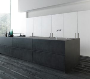 - островной гарнитур может быть представлен свободной столешницей или вмещать раковину или варочную поверхность. Располагается напротив основной части в центре комнаты, не устанавливается у стены и может использоваться, как обеденный стол.