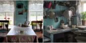 Но чтобы ваша обстановка сразу же давала понять о стилистике, стоит сделать уникальную роспись по стене. Это смотрится очень интересно и не должна покрывать все стены. Очень востребована на сегодняшний день гжель. Можно выбрать для росписи небольшой угол, переходящий к окну и прячущийся за холодильником. А вот над выбором люстры здесь можете особенно не раздумывать, не в каждом доме могли позволить себе большую люстру. Можно оставить голый провод с вкрученной лампочкой, но в таком случае энергосберегающие модели будут смотреться неуместно. Используйте своё воображение и любите свои традиции!