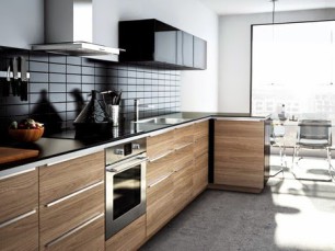 Древесный выбор всегда очень сложно сочетать с правильными элементами в современном интерьере. Если вы боитесь испортить общую картину, можно выбрать самую простую глянцевую поверхность, отдав первенство дерева отделке пола, стен или даже потолка. Кроме того стоит учитывать факт габаритов помещения. В маленьких кухонках деревянный фасады смотрятся неуместно, а в жару могут создать эффект сауны.