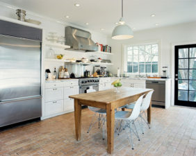 Современный дизайн кухни предполагает не только свежие идеи, но и удобные и новомодные предметы интерьера, техники. Это может быть холодильник с двумя дверьми side-by-side, духовой шкаф 3 в 1 с возможностью готовки, выпечки и подогрева блюд, кран с выдвижным душем для удобной мойки и пр. Всё, что может представить себе дизайнер стоит брать на вооружение. Конечно, сочетать несочетаемое не следует, но брать идеи себе на заметку не повредит!
